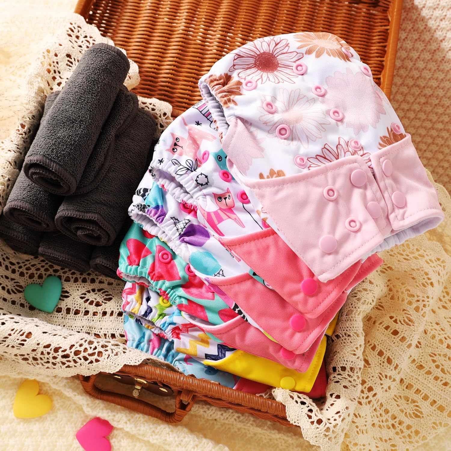 - Includes 6 colorful cloth diapers +6 high-absorbency inserts+1 free wet bag. It would be great gifts for the newborns and moms!