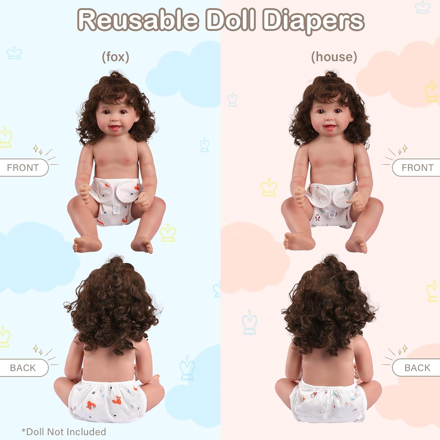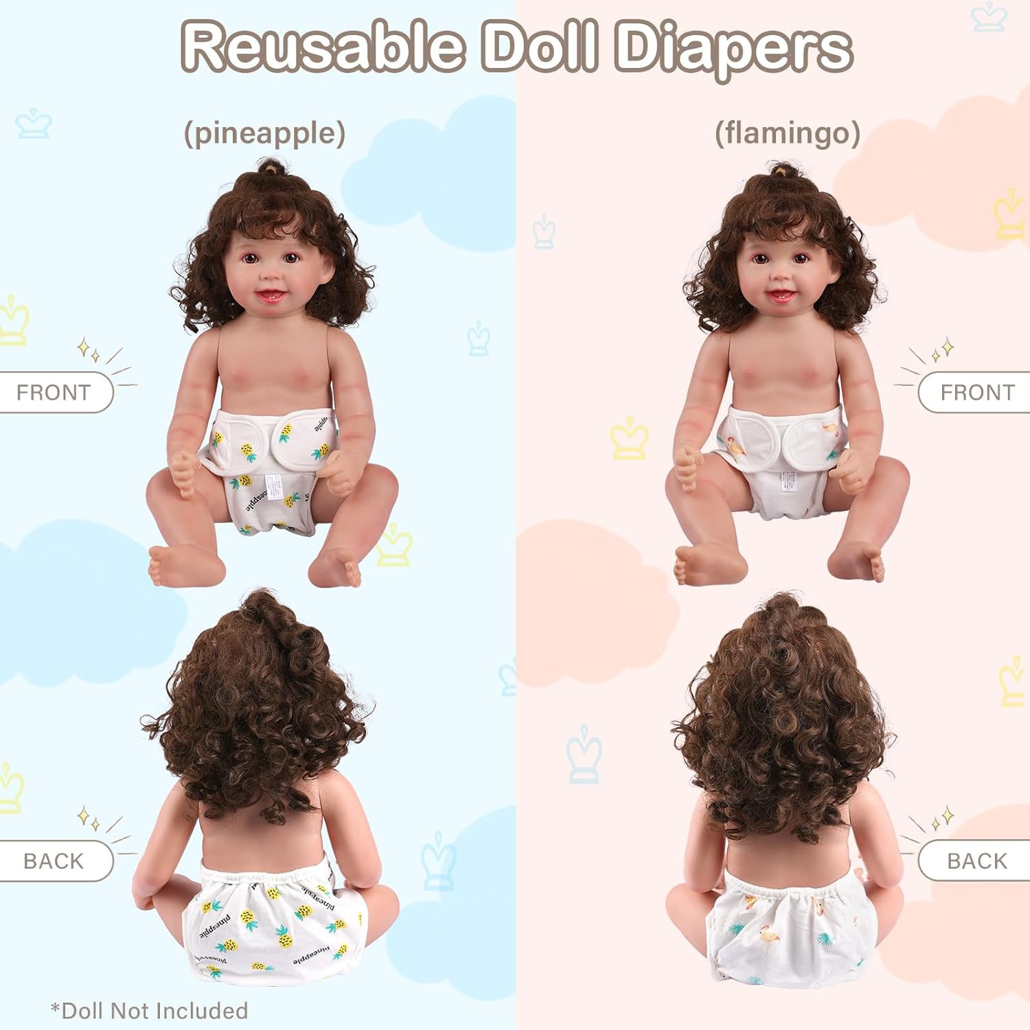 4 Pcs Baby Doll Diapers