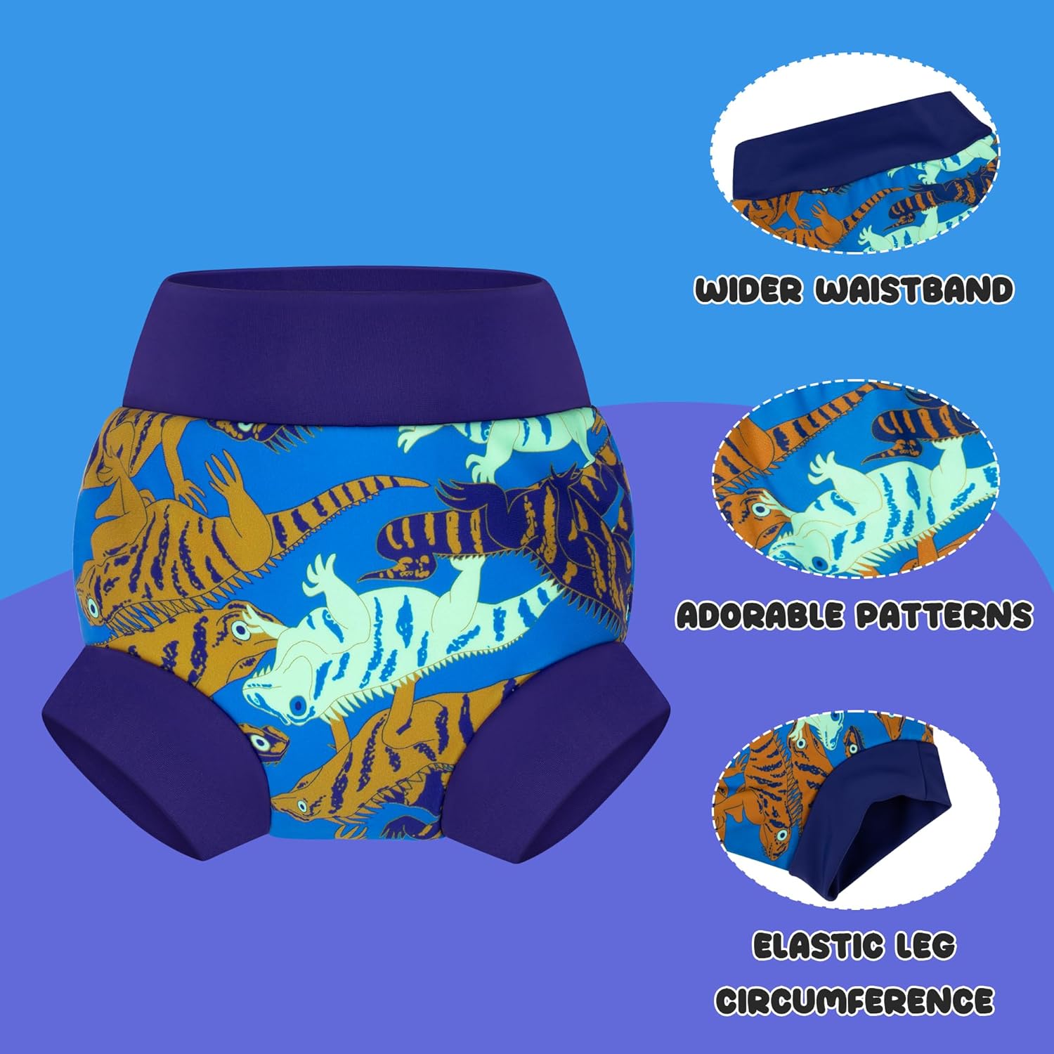 BIG ELEPHANT Baby Swim Diapers 3pcs, Reusable Adjustable Washable Waterproof Swimming Diaper for Boy’s and Girl’s 6Months – 5 Years