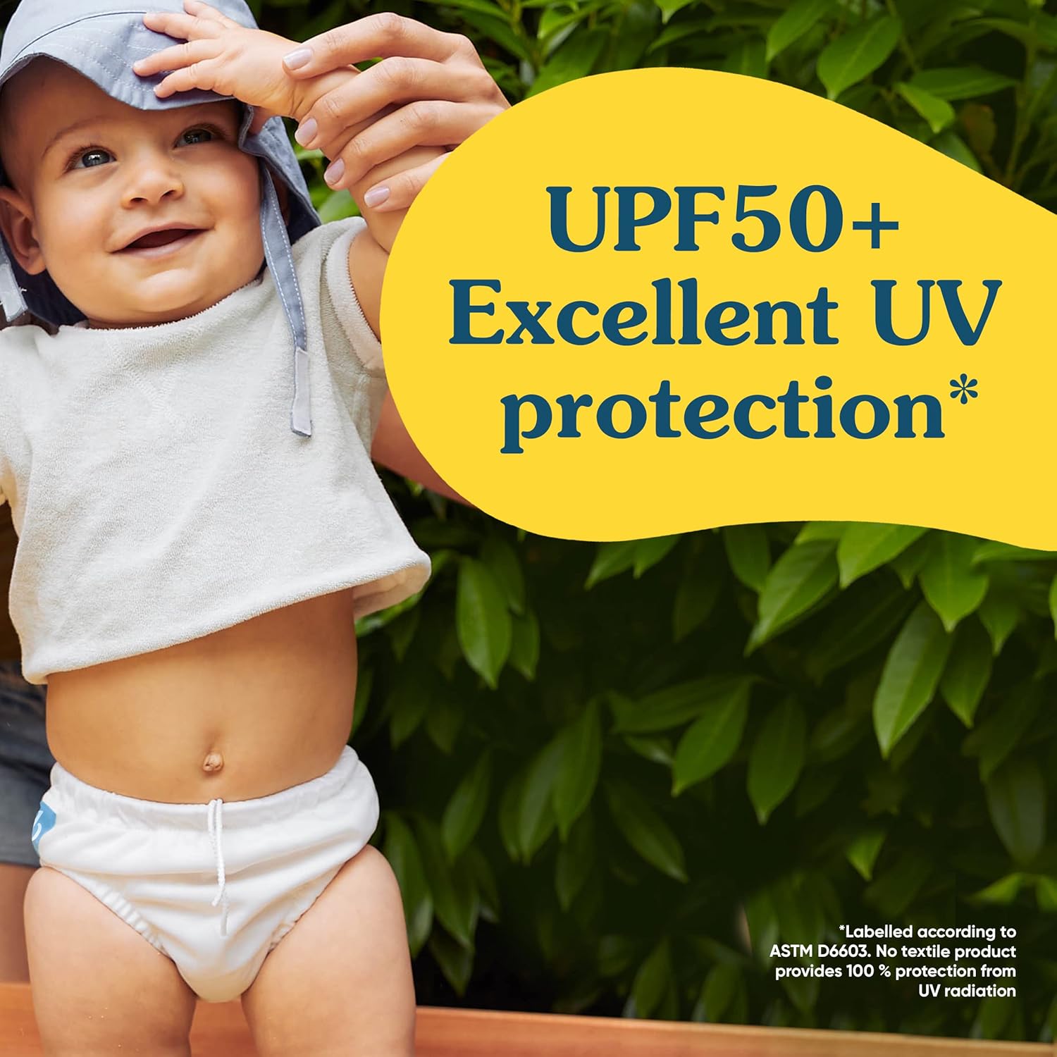 With an elastic drawstring waist, our swim diapers slip on and off easily for fast changes, even with wriggly babies.