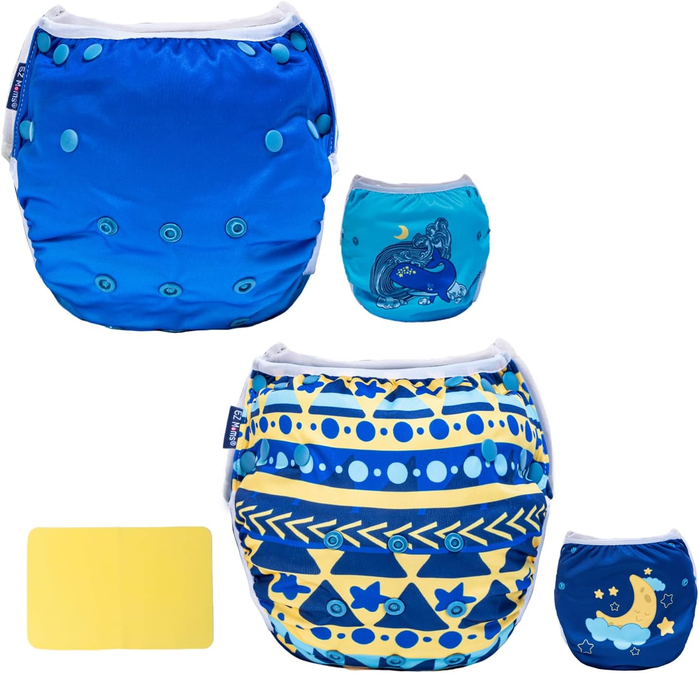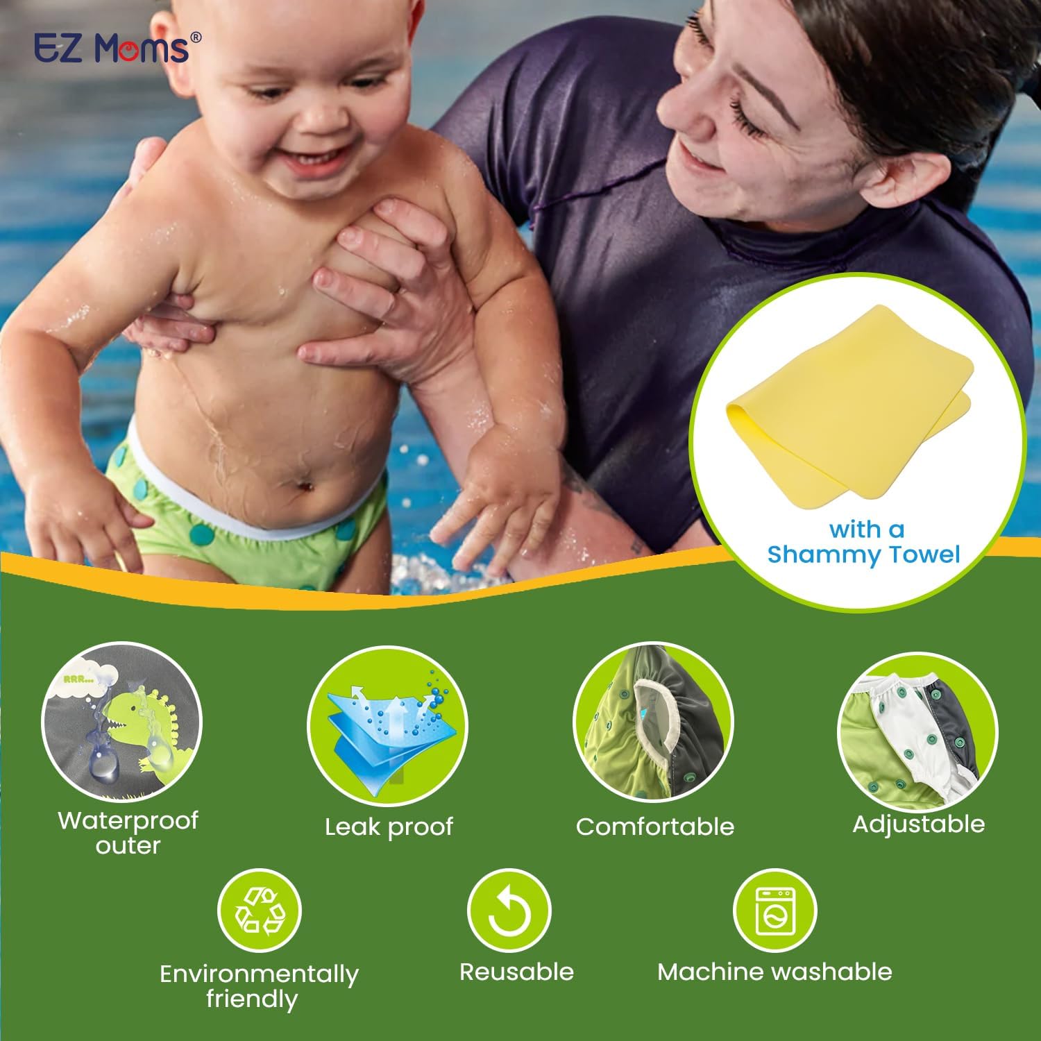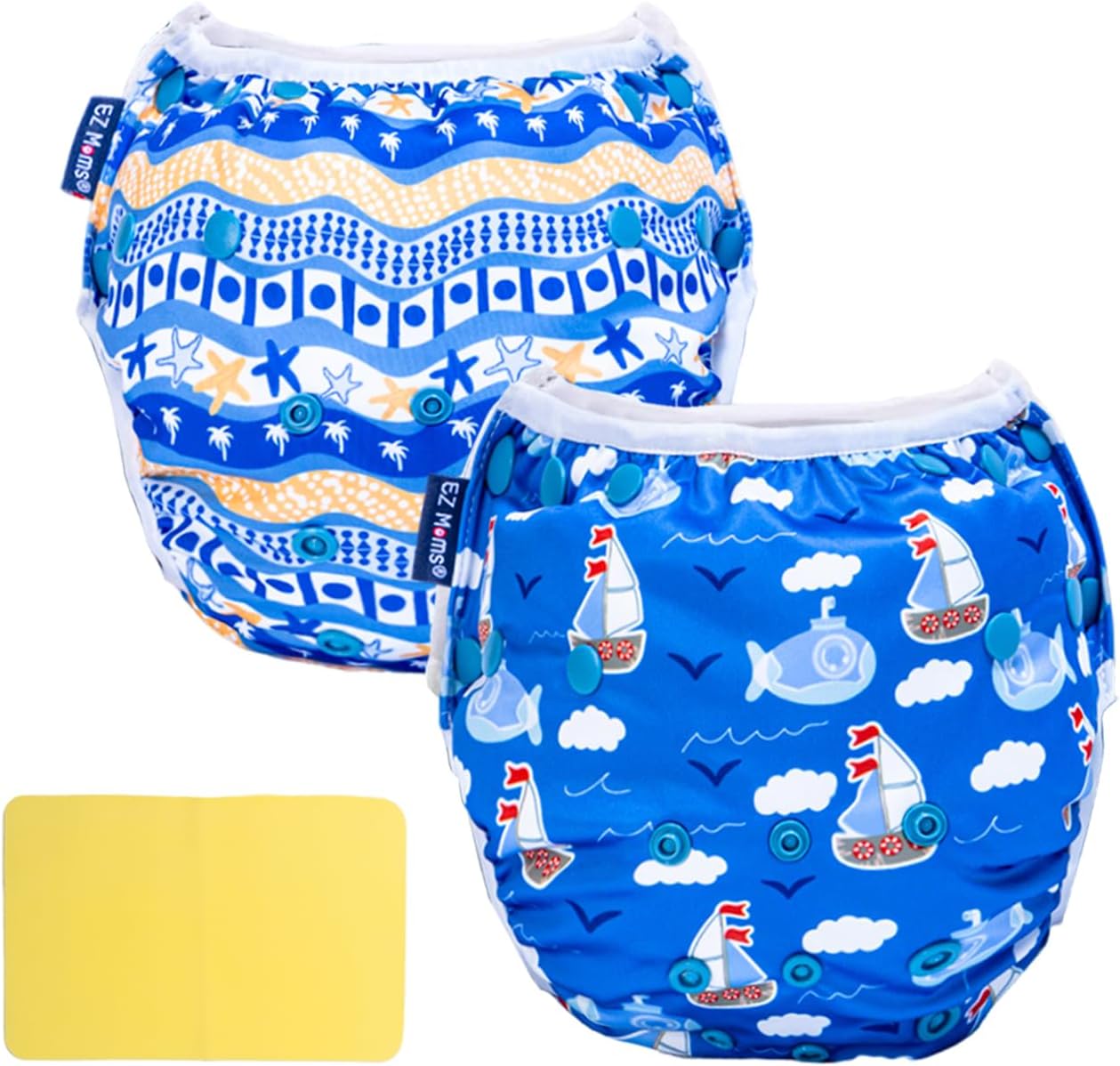 EZ Moms Baby Swim Diapers Reusable 2Pcs Snap One Size Adjustable Washable Newborn Infant Swim Diaper with a Shammy Towel for Baby Boy Water Diaper Waterproof Swimming Diapers for Swimming Lessons