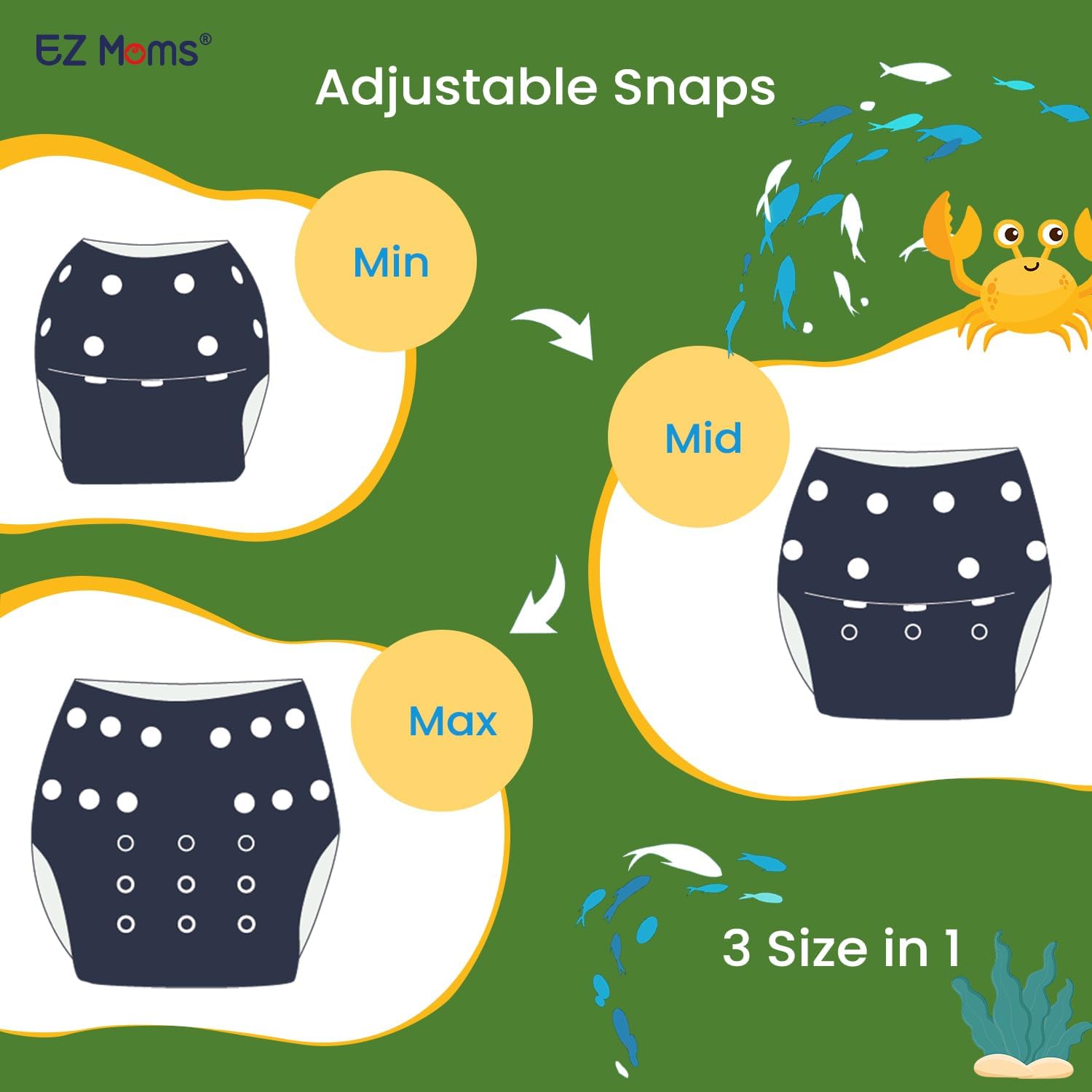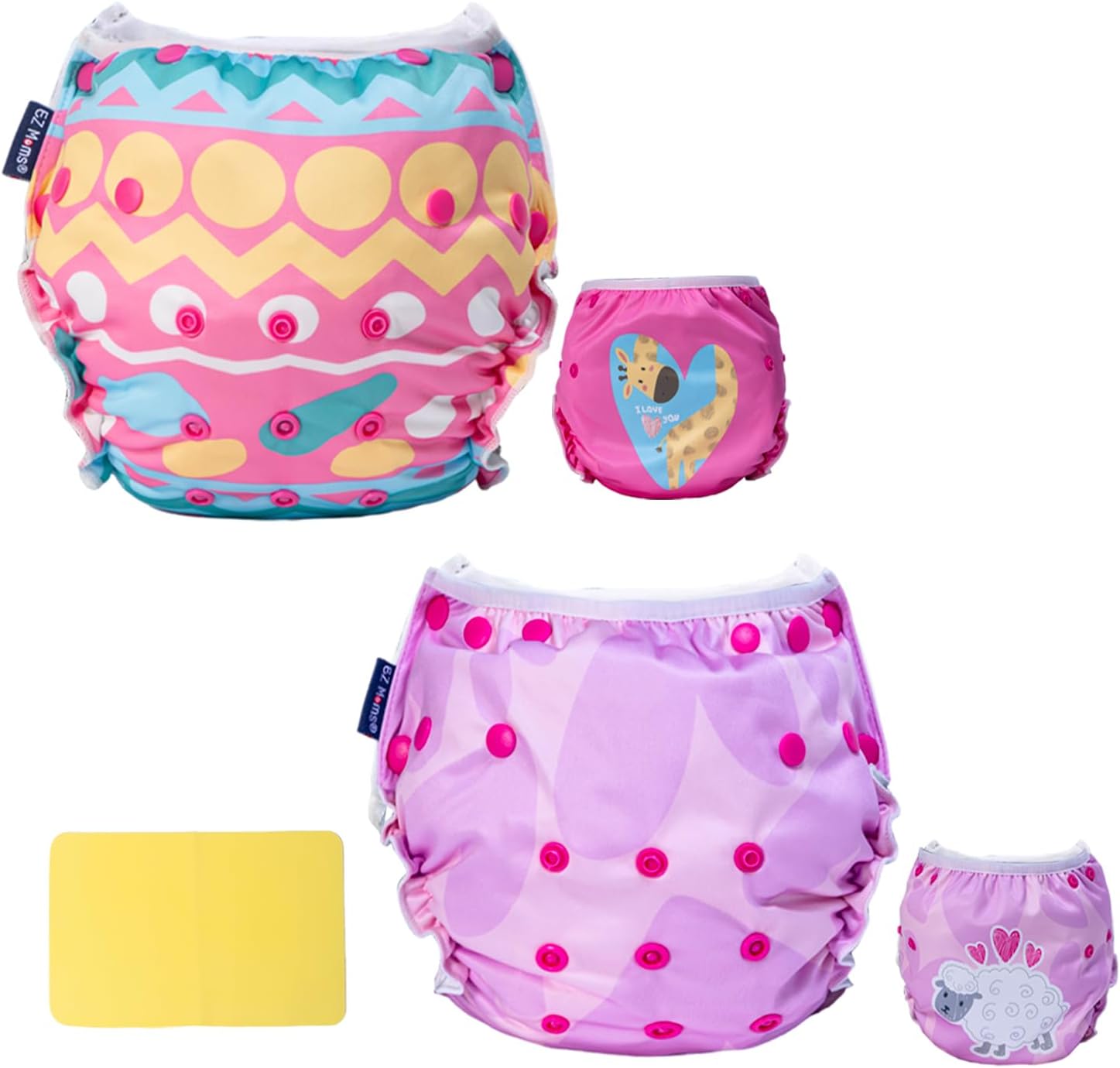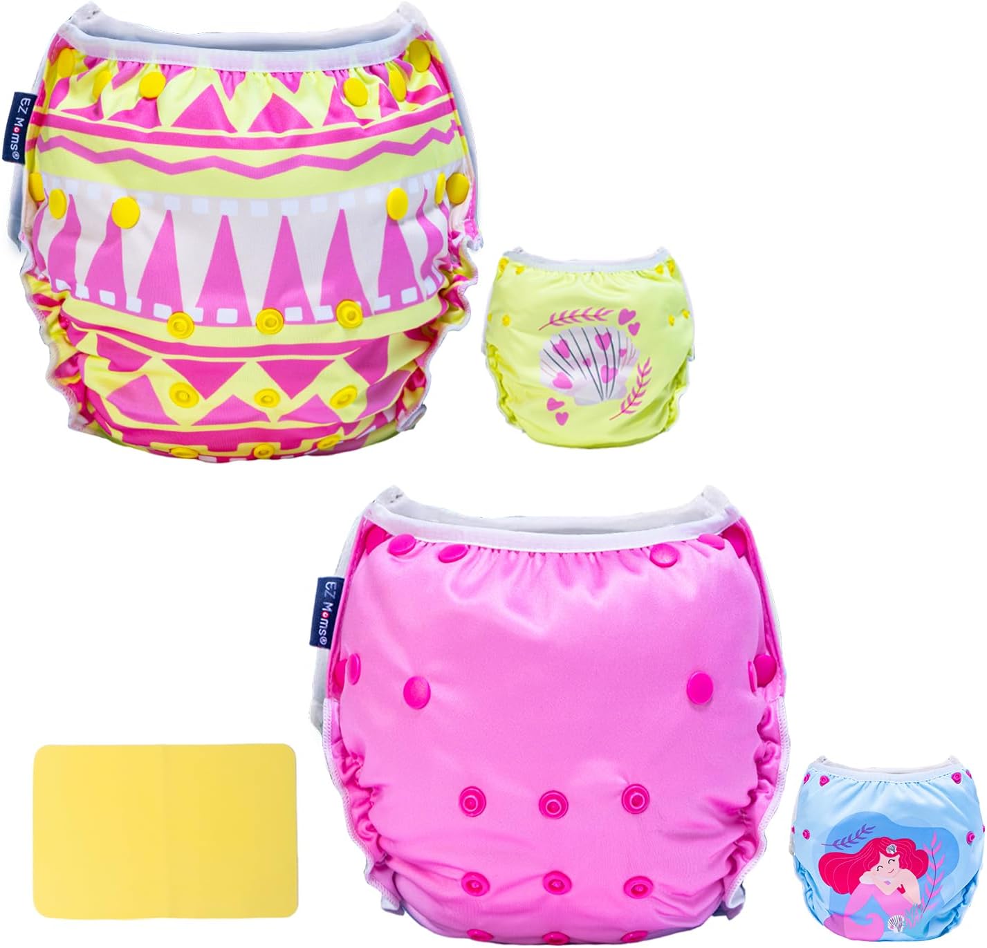 EZ Moms Baby Swim Diapers Reusable 2Pcs Snap One Size Adjustable Washable Newborn Infant Swim Diaper with a Shammy Towel for Baby Boy Water Diaper Waterproof Swimming Diapers for Swimming Lessons