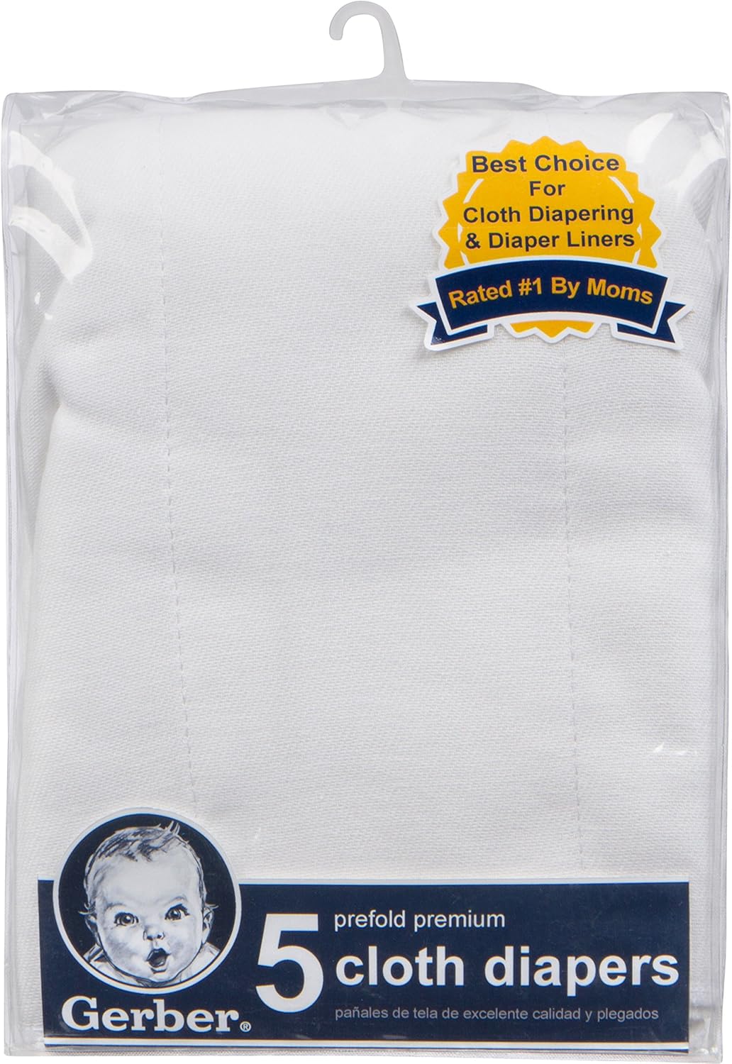 Gerber Unisex Baby Boys Girls Gauze Prefold Cloth Diapers Multipack White 5 Pack