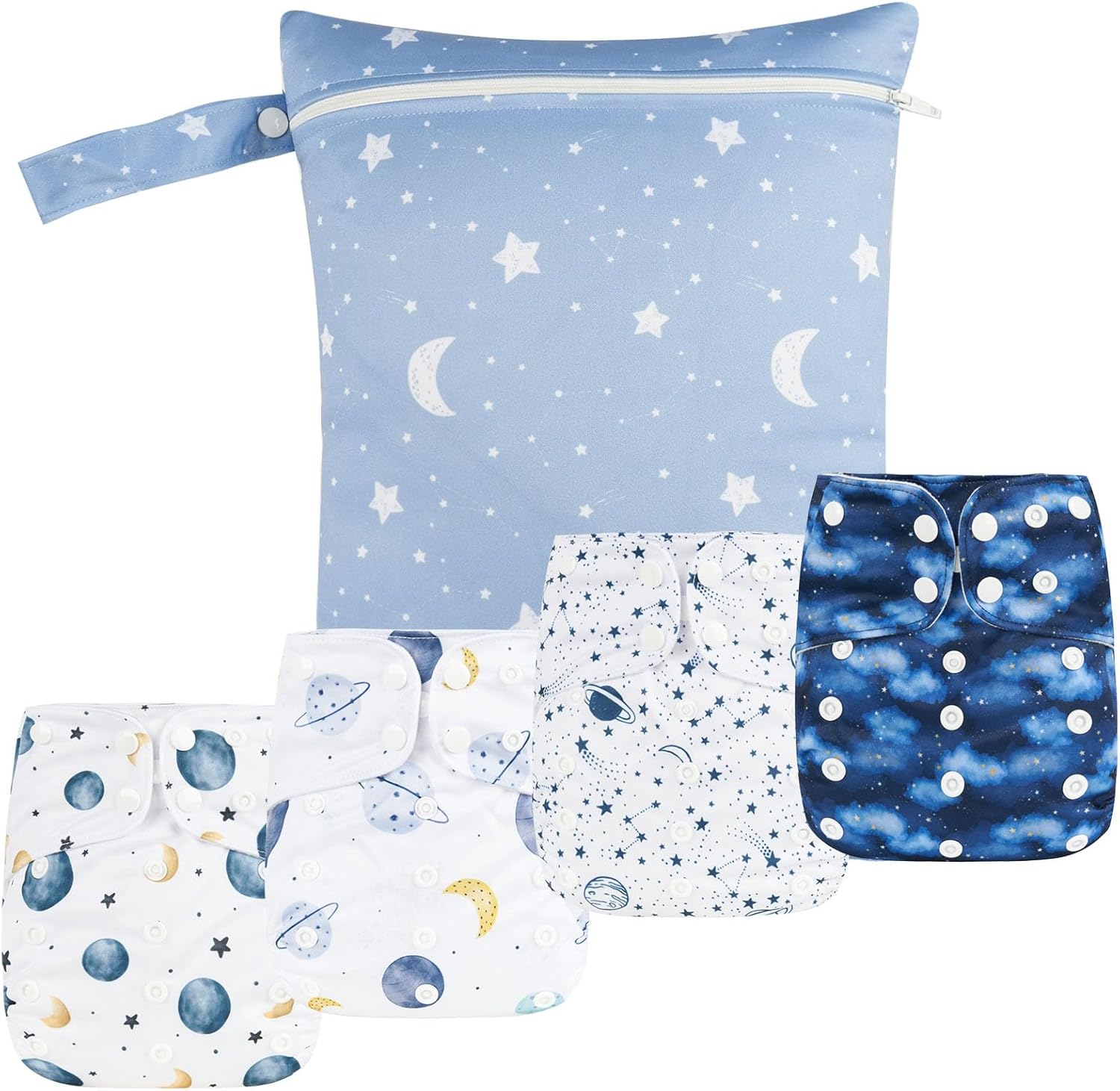 HappyFlute 9 Sets Newborn Baby Cloth Pocket Diapers Adjustable Reusable for Baby Boys and Girls(6-33 pounds,0-3 Years),One Wet Bag+4Diapers and 4Inserts (AD10)