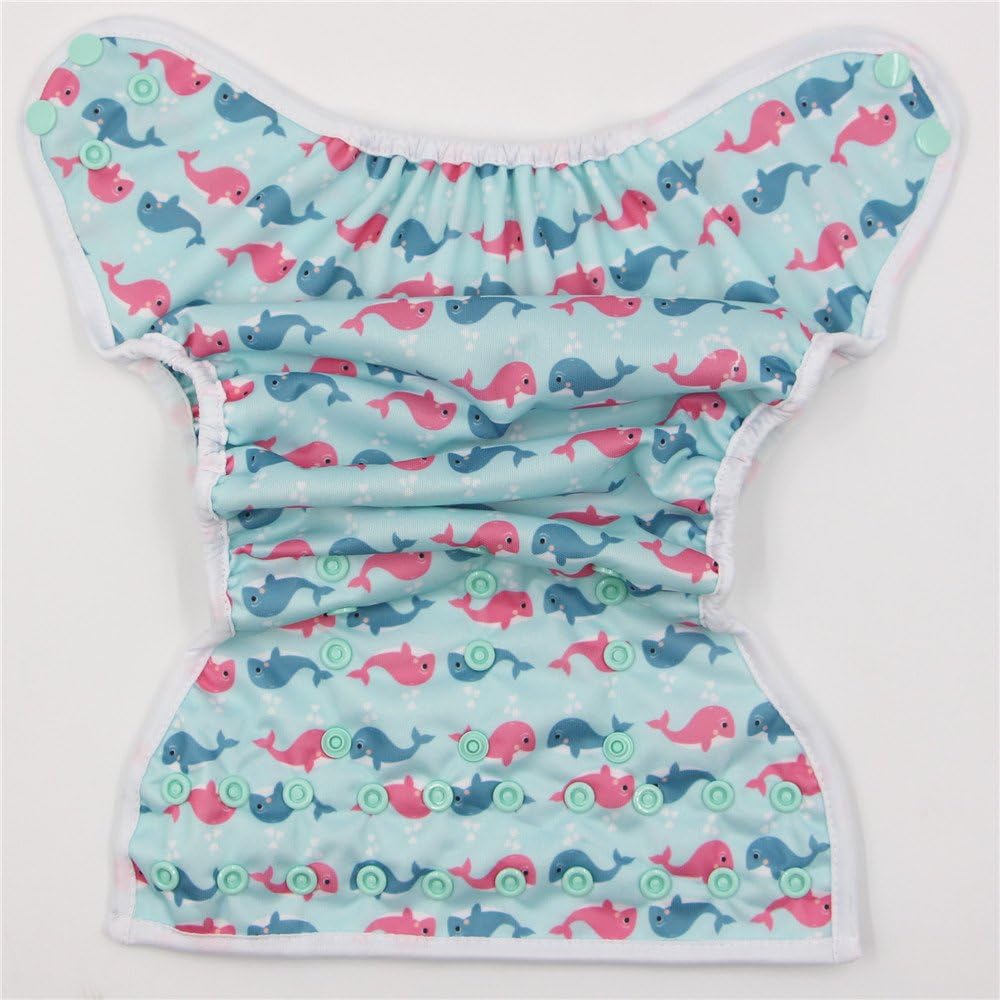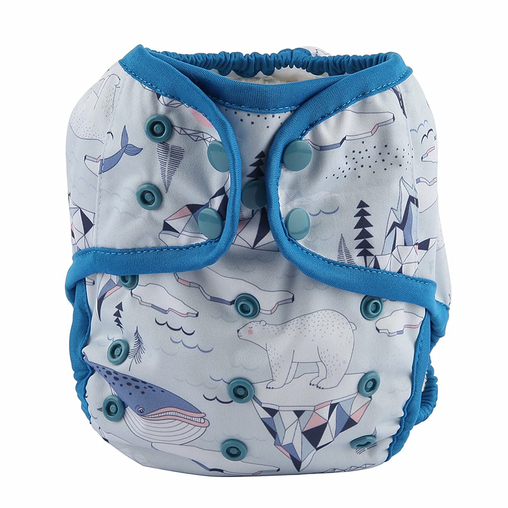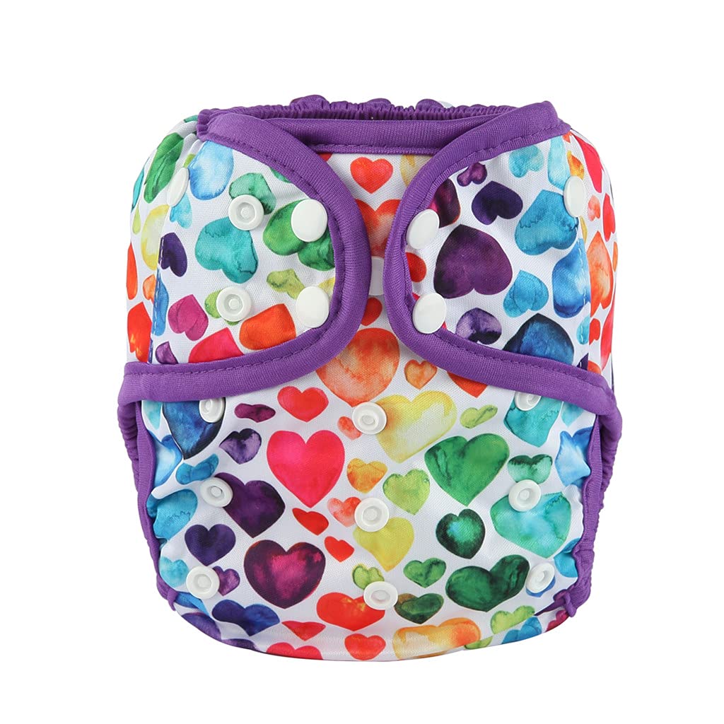 The Cloth Diaper Cover is designed to grow with your baby with 3 adjustable rise settings that are designed to fit your baby. Weight range of cover starts at 8 pounds and will fit up to approximately 36 pounds. Covers may be used multiple times before washing but should be placed into the laundry if it becomes soiled.