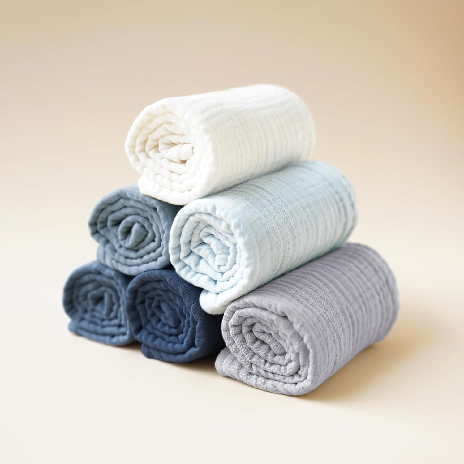 Konssy Muslin Baby Burp Cloths 6 Pack, Soft Absorbent 100% Cotton Burping Clothes for Newborns, Baby Boys and Girls, Unisex