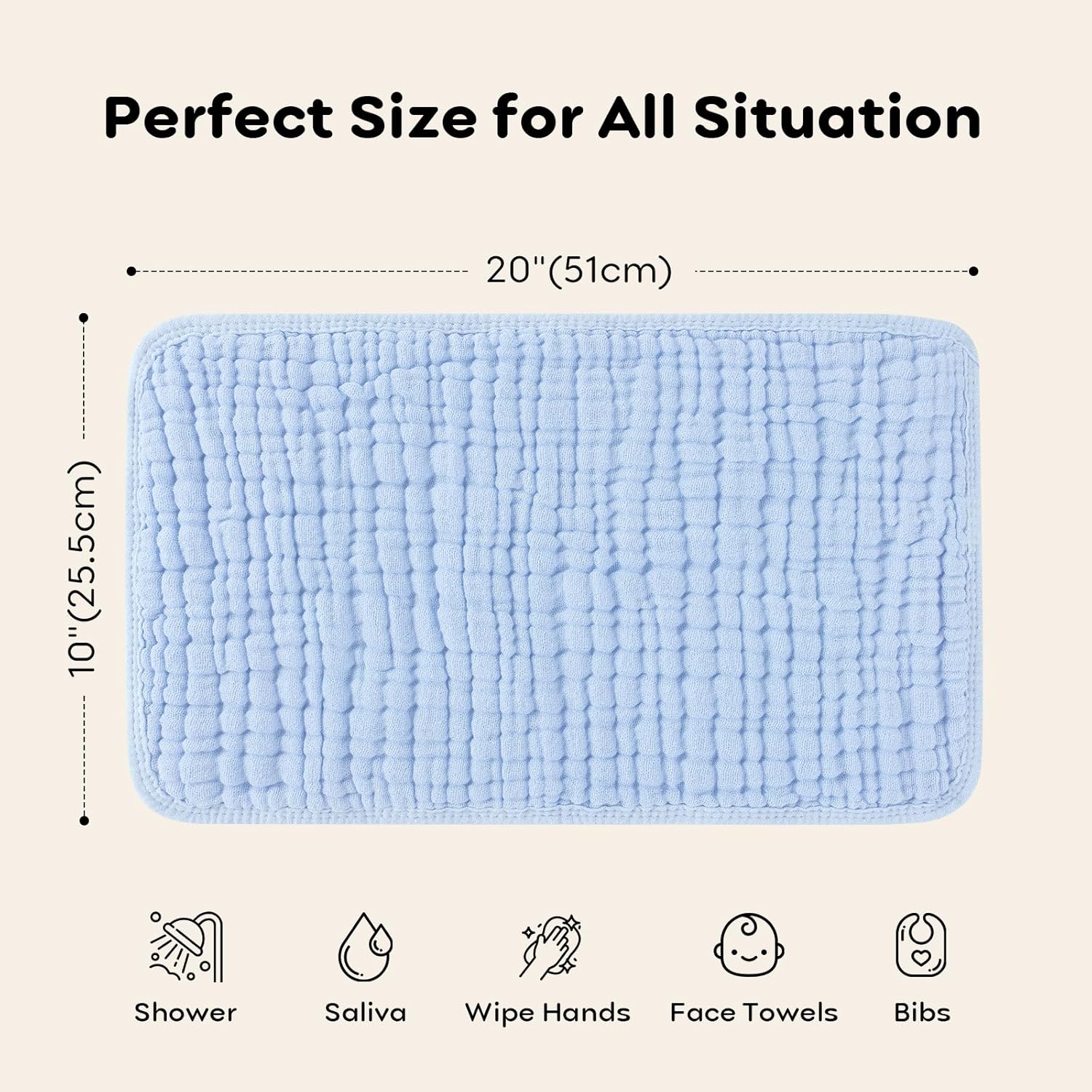 Looxii Muslin Burp Cloths 100% Cotton Muslin Cloths Large 20”x10” Extra Soft and Absorbent 6 Pack Baby Burping Cloth for Boys and Girls (Blue)