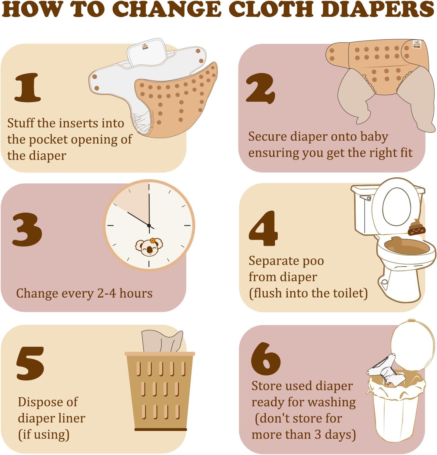 Mama Koala diaper liners are 100% natural and soft as cotton. Lay on top to make diaper clean up easier! Fits all types of baby diapers.
