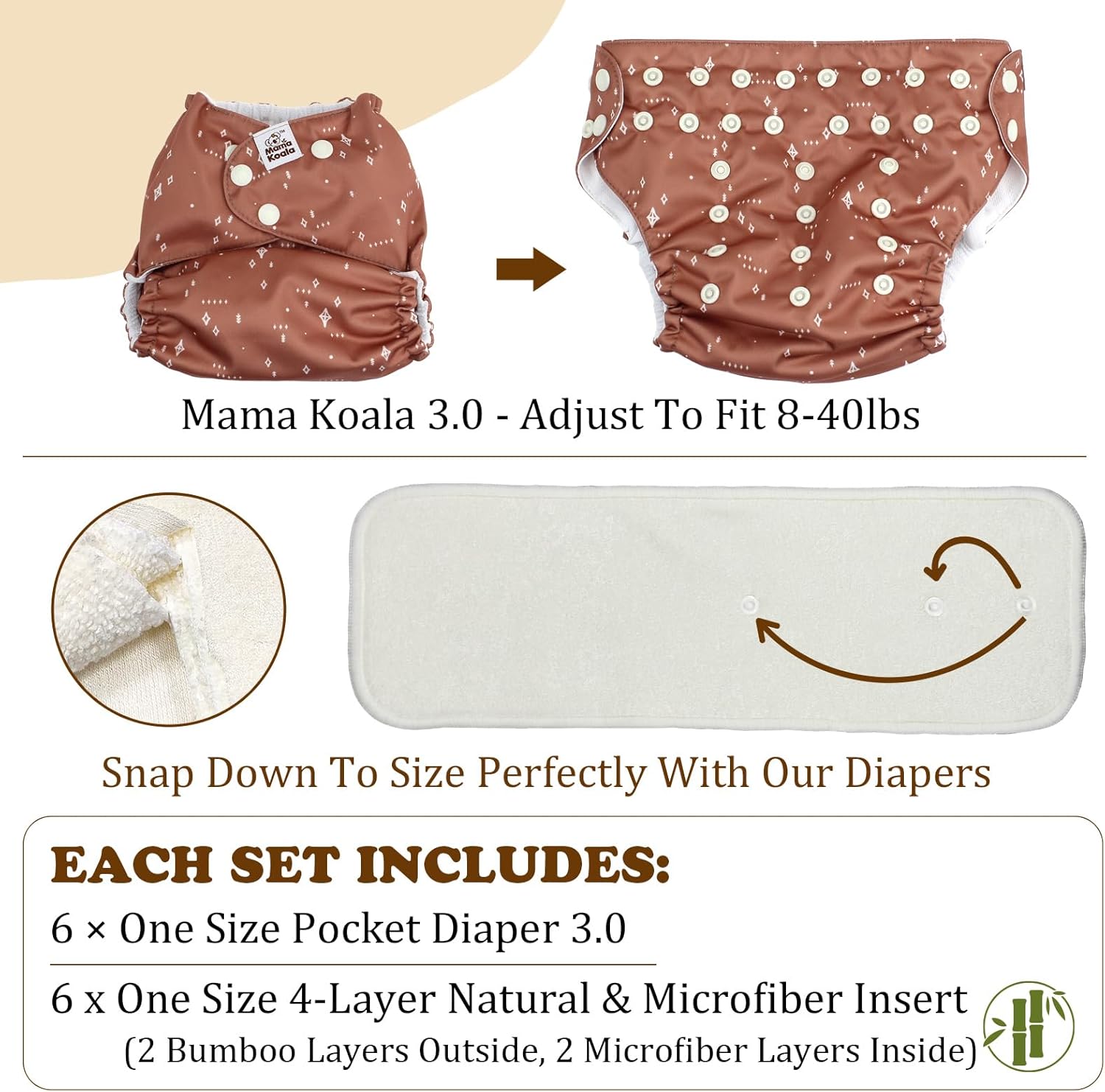 Mama Koala 3.0 Cloth Diapers for Babies, 6 Pack One Size Washable and Reusable Pocket Diapers for Newborns and Toddlers (Rainbow and Love)