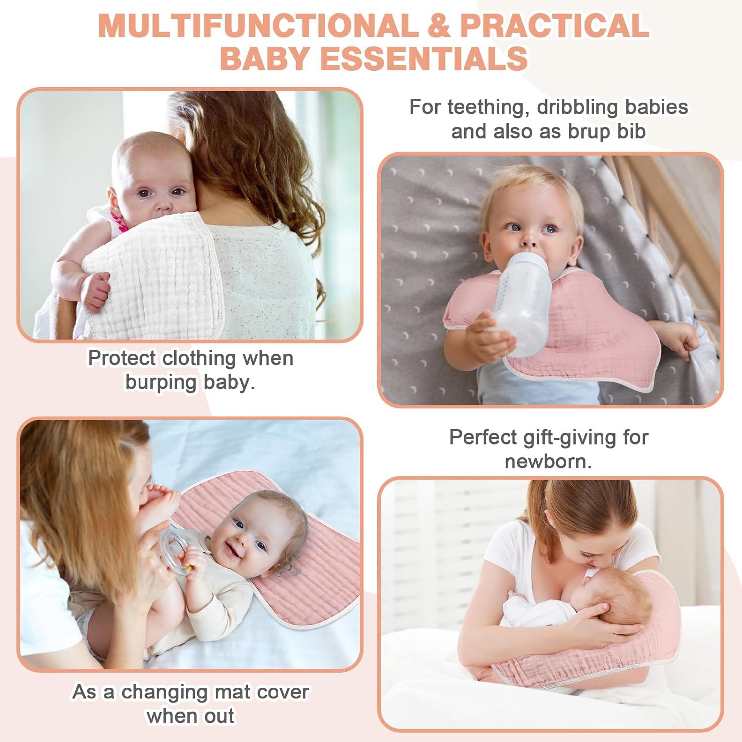 Ruvanti Unisex Baby Boys Girls Birdseye Prefold Cloth Diapers Washable – White 3-Ply 10 Pack