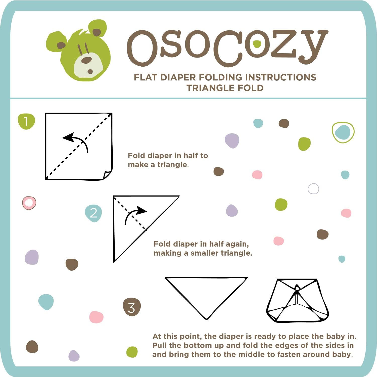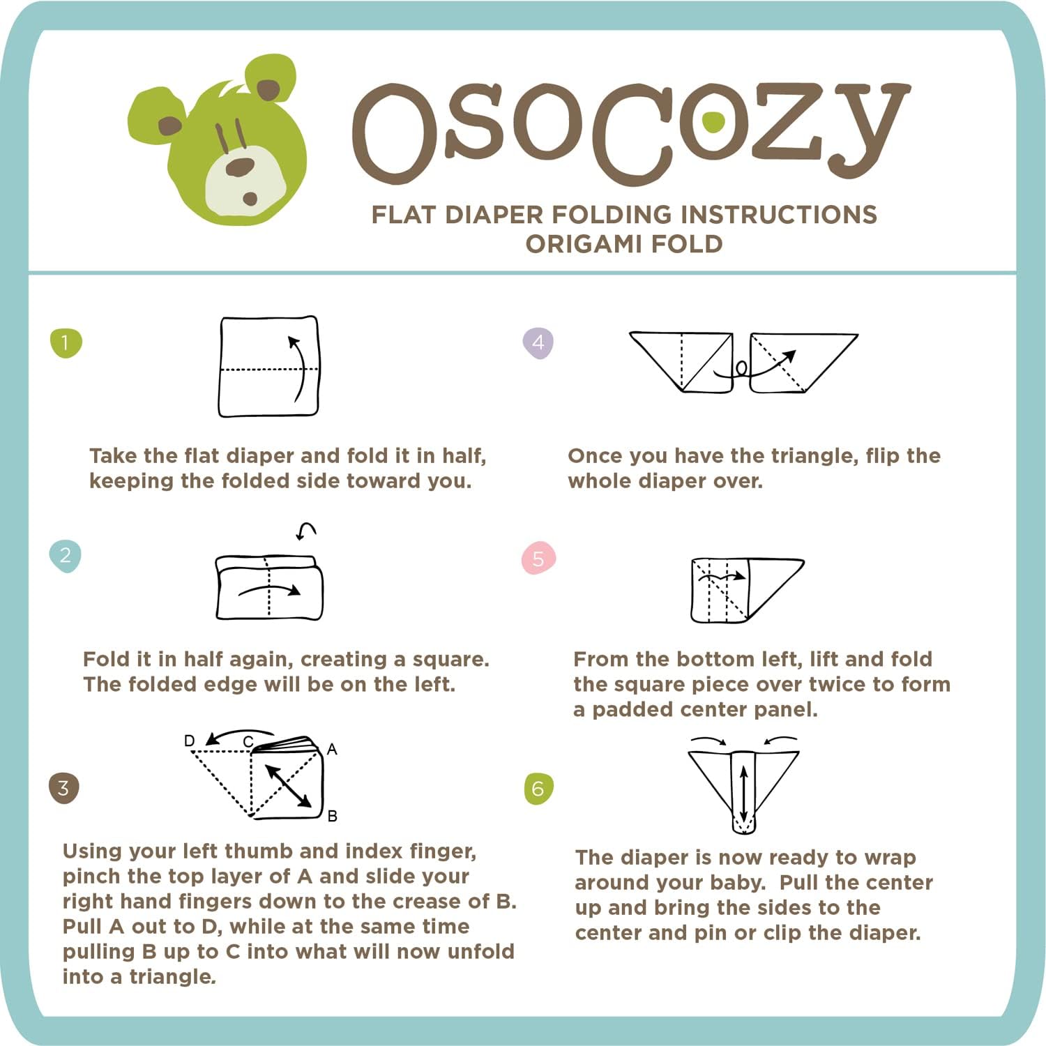 OsoCozy flats have been tried and tested for over a decade. These old fashioned cloth diapers are made of soft 100% cotton birdseye. They are one layer thick, and they measure 27 inches by 30.5 inches, sized to shrink to a square for easier folding. Each diaper weighs just over 3 ounces, which is much heavier and more absorbent than discount brands sometimes found in chain stores. Osocozy flats are also much softer and more durable than you find in chain stores.