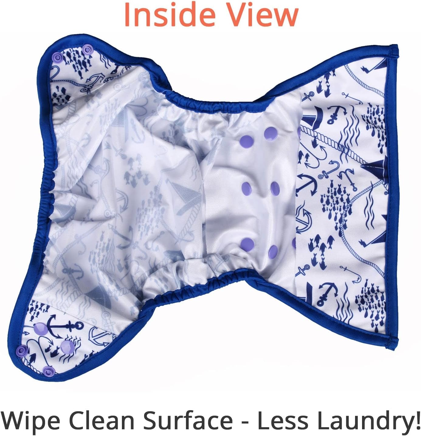 The wipe down surface allows you to reuse the cover several times between washes. The soft and gentle double leg gussets keep messes contained and the durable poly urethane laminate will hold up in laundering and still look cute wash after wash.