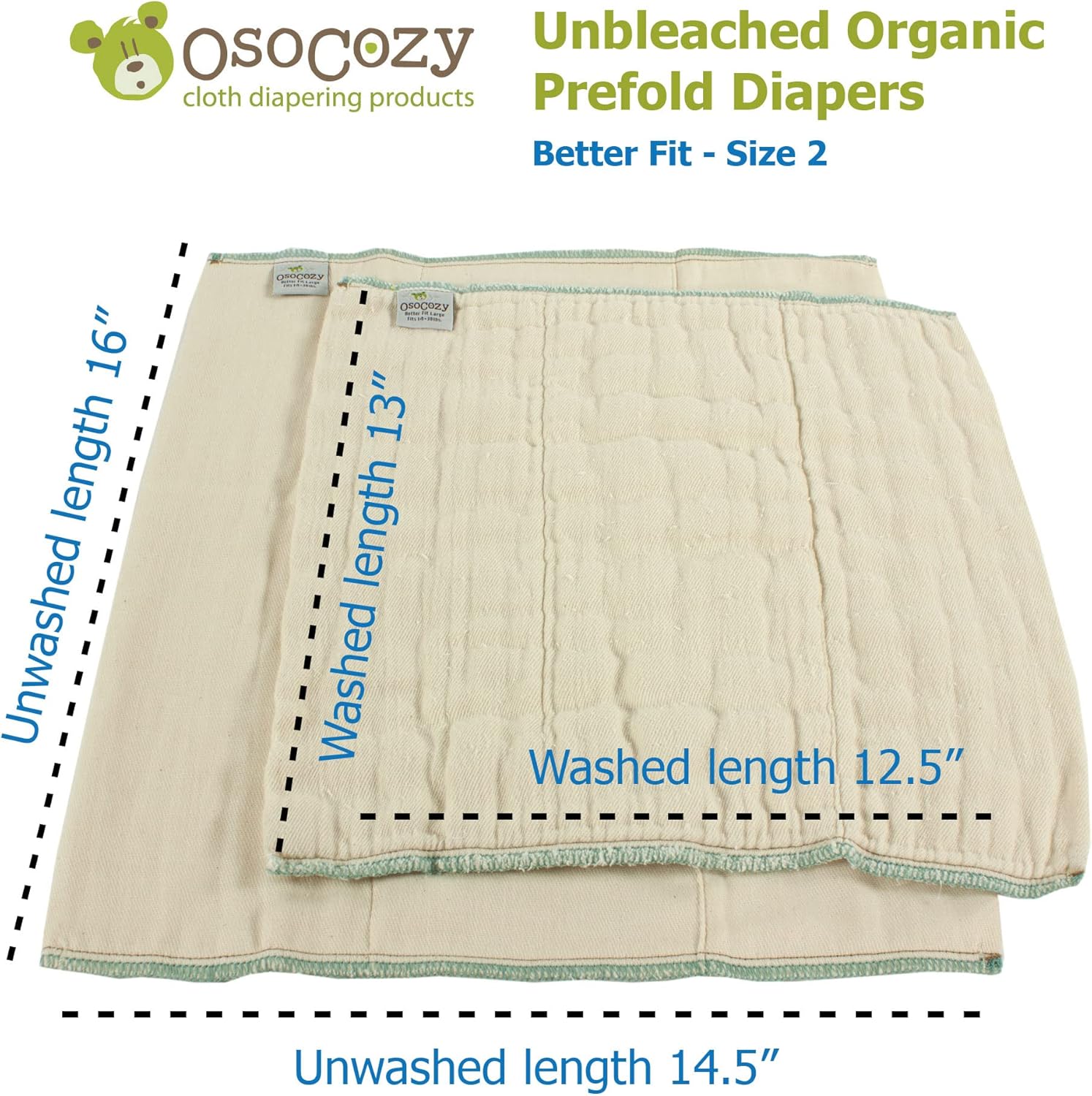 OsoCozy Organic Cotton Prefold Cloth Diapers (6pk) – Super-Soft, Thick, Absorbent, Durable and Ecologically Friendlier.