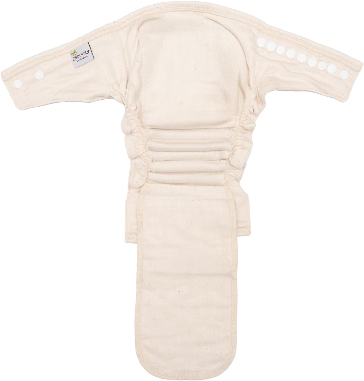 The OsoCozy Two Size Fitted Cloth Diaper – Our imported 2 sized fitted cloth diaper is made of multiple absorbent layers of unbleached birdseye cotton. Four full width layers, an interior center made of four more layers and finally an attached exterior pad with four more layers. Birdseye cotton is a traditional 100% cotton diaper material which launders trouble free and lasts a long time. You will appreciate the softness and durability of this back to basics material. The leg and waist elastic is latex free. This economical snap closing diaper is among the favorites for budget conscious customers.