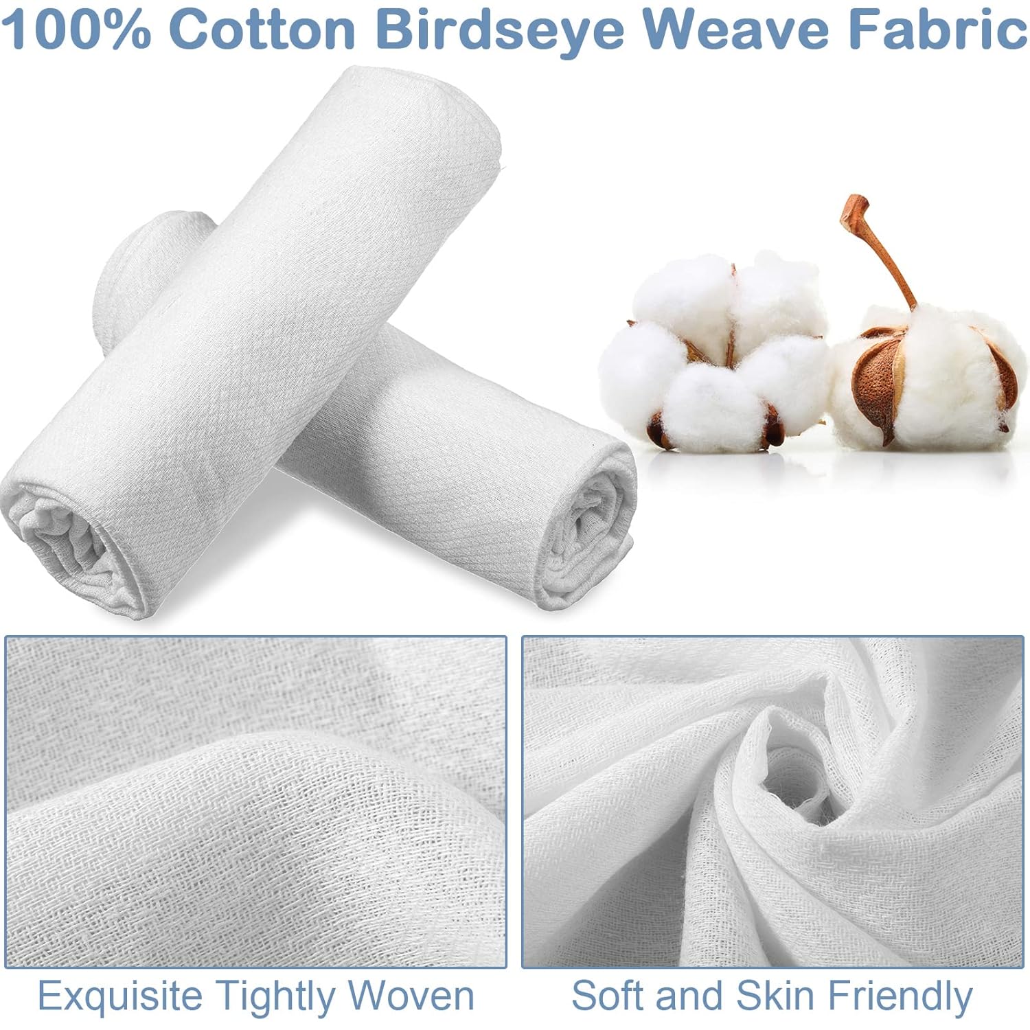 Ruvanti Unisex Baby Boys Girls Birdseye Prefold Cloth Diapers Washable – White 3-Ply 10 Pack